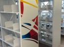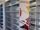 Использование особой технологии позволило создать яркий и современный визуальный акцент. Печать устойчива к истиранию, влаге и свету, экологична и безопасна для учебных помещений. Благодаря этому стеллажи стали не только функциональными, но и частью дизайна интерьера библиотеки.