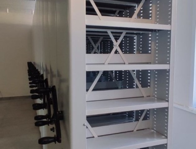 Из-за значительной высоты стеллажей – 2040 мм и при малой ширине секций были установлены специальные антиопрокидыватели, обеспечивающие устойчивость и безопасность персонала при выдвижении секций.